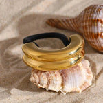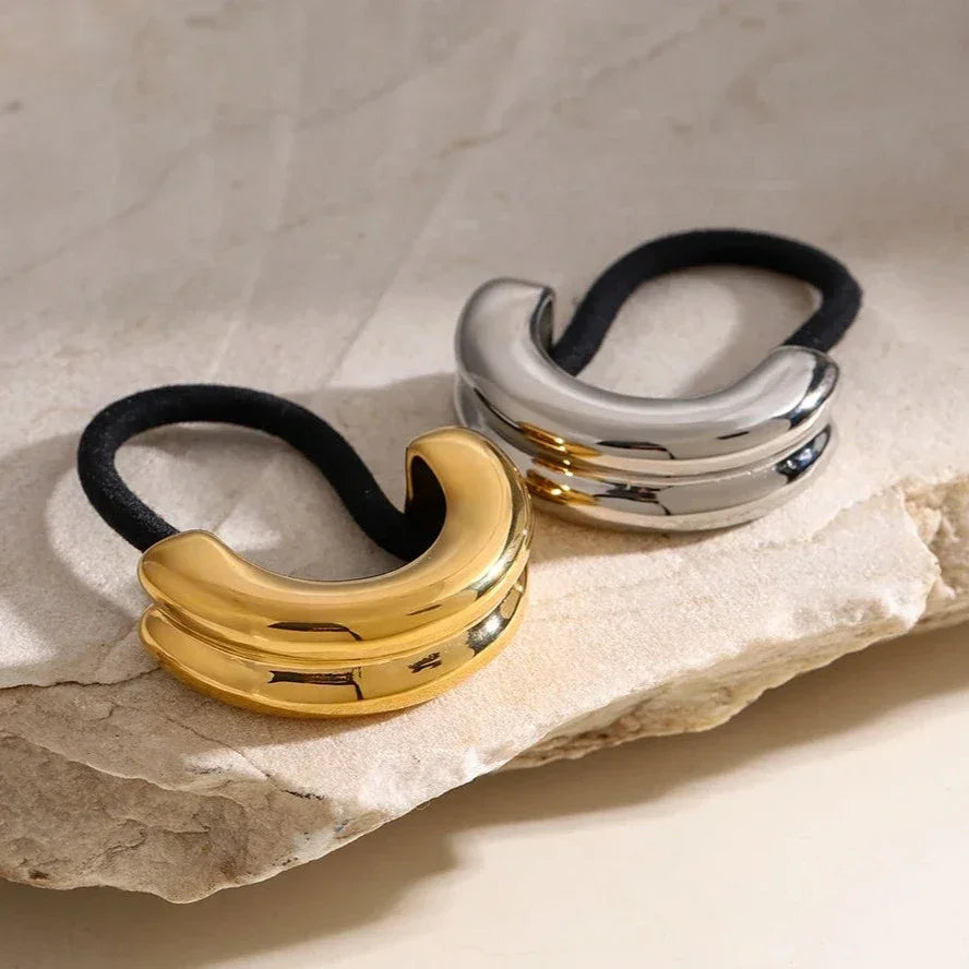 The Glossy Double Arch Pony Cuff silhouette makes a bold statement without being over the top. It's the perfect accessory for the modern woman who appreciates clean lines and understated elegance. Hypoallergenic and waterproof for worry-free wear as always.