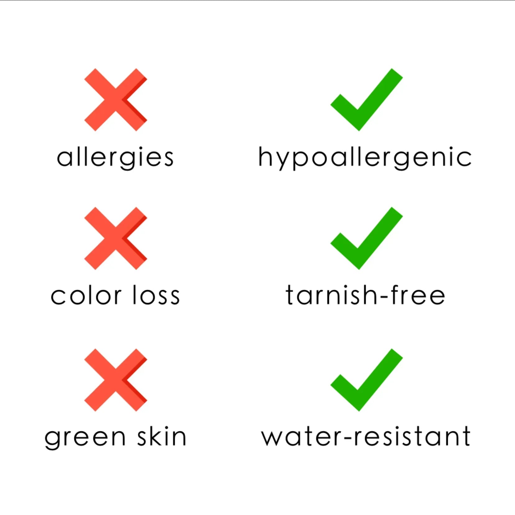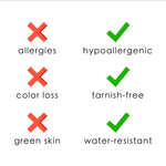 - Water, Sweat, and Heat Resistant. (No discolouration, No Tarnishing).