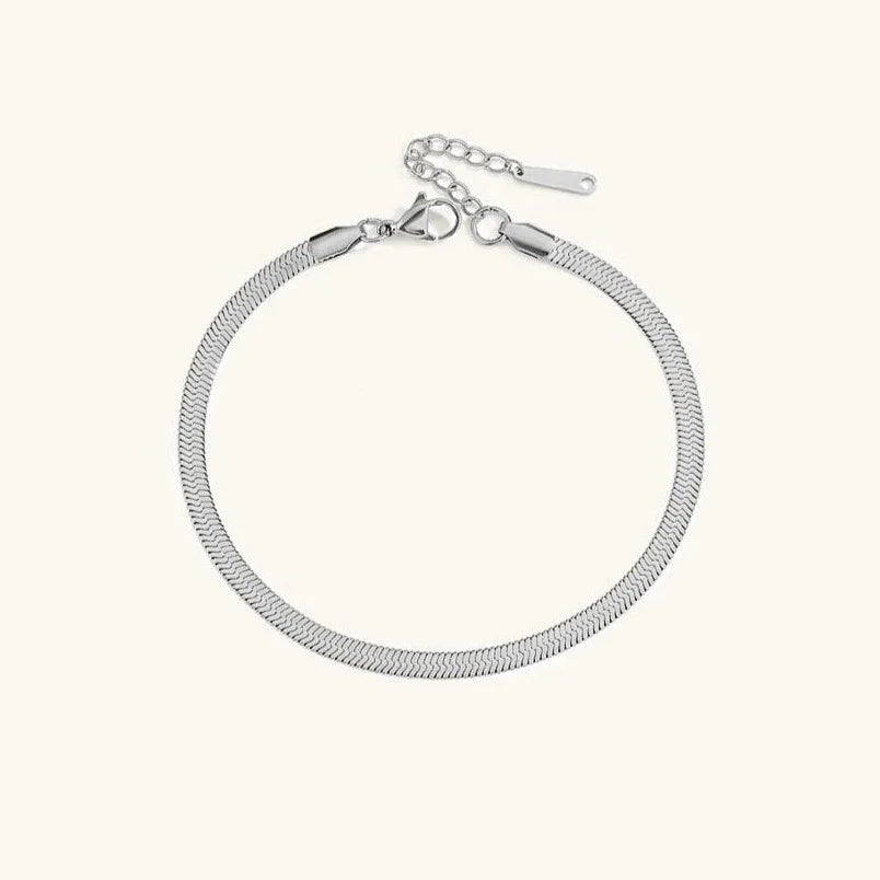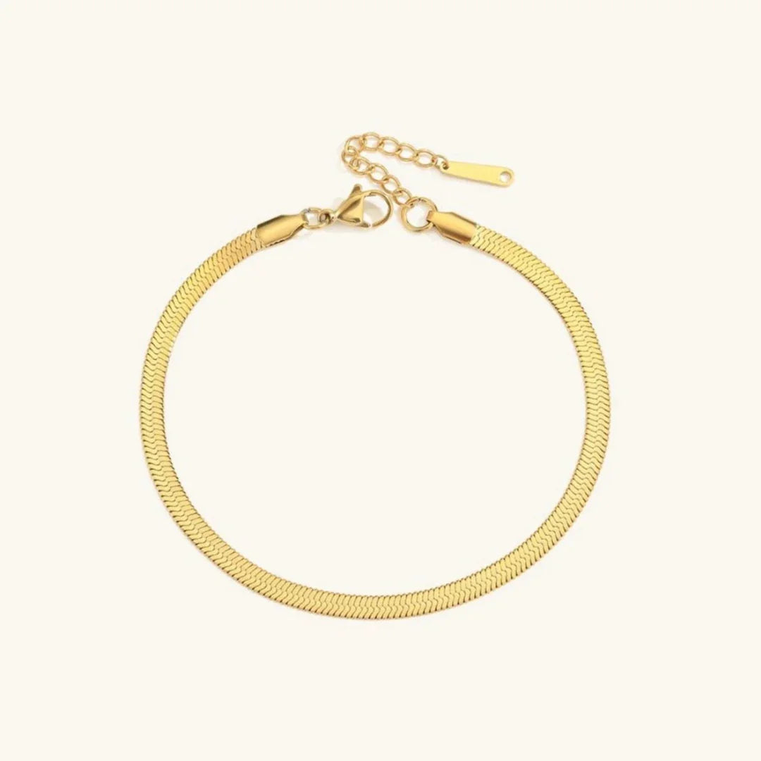 This Gia Gold Herringbone Anklet is perfect for creating a classic and sophisticated look. Crafted with an elegant herringbone design and high-quality materials, this anklet is sure to turn heads. Wear it with any outfit and feel chic and confident.