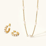 Prepare to feel the tropical breeze with Sienna’s Paradise Bundle! This set includes two stunning pearl pieces: Irene Pearl Huggie Earrings and Nora Gold Pearl Necklace. Whether you’re living it up in the tropical wonderland or looking forward to your next beach trip, this bundle will add radiance to your ensemble.