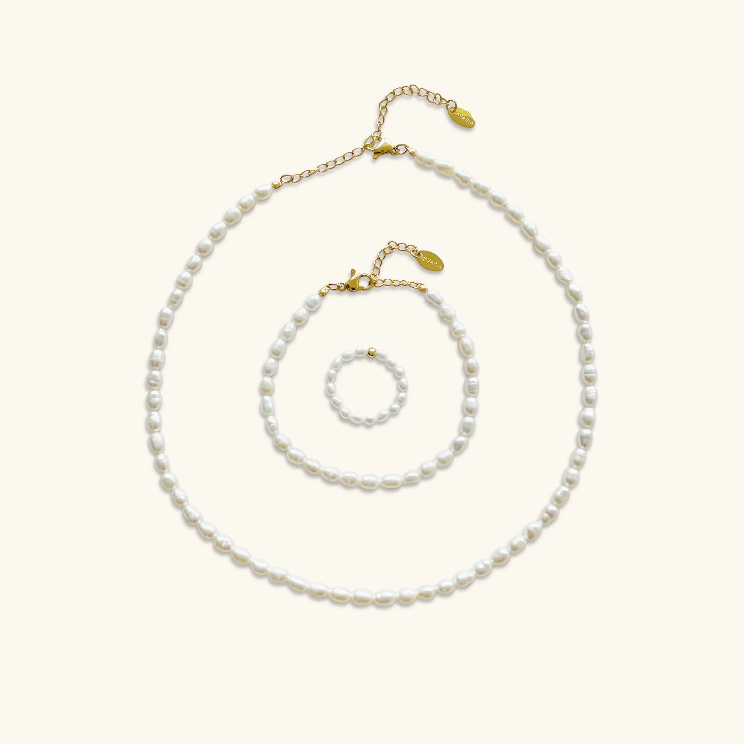 - You will receive An Avaria Freshwater Pearl Choker, a Sami Freshwater Pearl Bracelet, and a Fiji Pearl Band Ring.