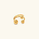 Petunia's Orbit is an understated accessory that features a fine band along with 3 gold spheres that wrap around your finger, giving you a gentle glow.